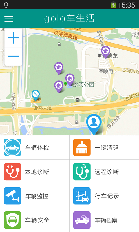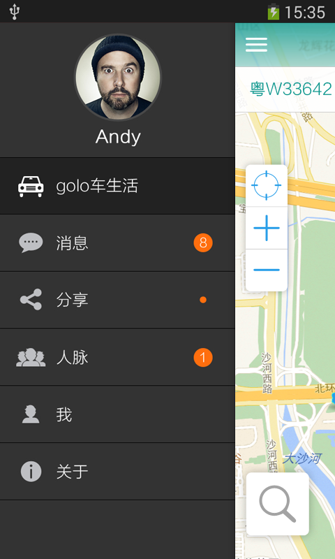 【搜索周边】基于地图的服务,可随时搜索周边维修厂、技师、golo用户;