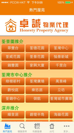 2、樓盤搜尋:用戶可按多個不同條件搜尋合適樓盤 ;